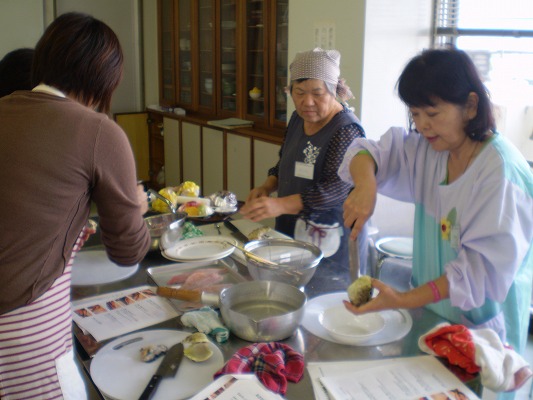 捌く時間で、かなり時間を押してしまったのですが、その後の工程は日頃料理しているみなさんなので、ものすごい速さで予定よりも早く実習を終えることができました。