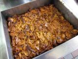 パインアップルを千切りにし、天板の上に広げて、オーブンで約1時間乾燥させる。(パリパリになるまで水分をとばす)