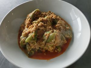 ヘチマから水分がでるのでスープ、塩味は調節して下さい。