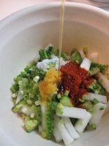即席キムチとは、醗酵させる前に食べるものでサラダのようなもの。 ごま油を加える事で苦味も和らげます。