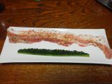 豚バラスライスの片面に七味&ゴマ(好み)でふりかけます。