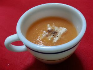 すべてが柔らかくなったら 最後に スープ 山芋(100g)人参 冬瓜を合わせ 一煮立ちしたら ミキサー にかけ トロリペーストにする